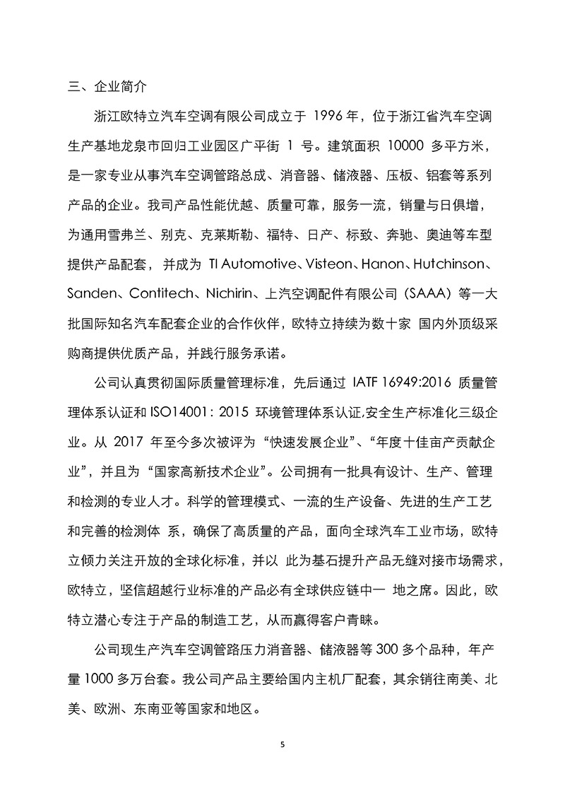 : 浙江歐特立汽車空調有限公司質量誠信報告